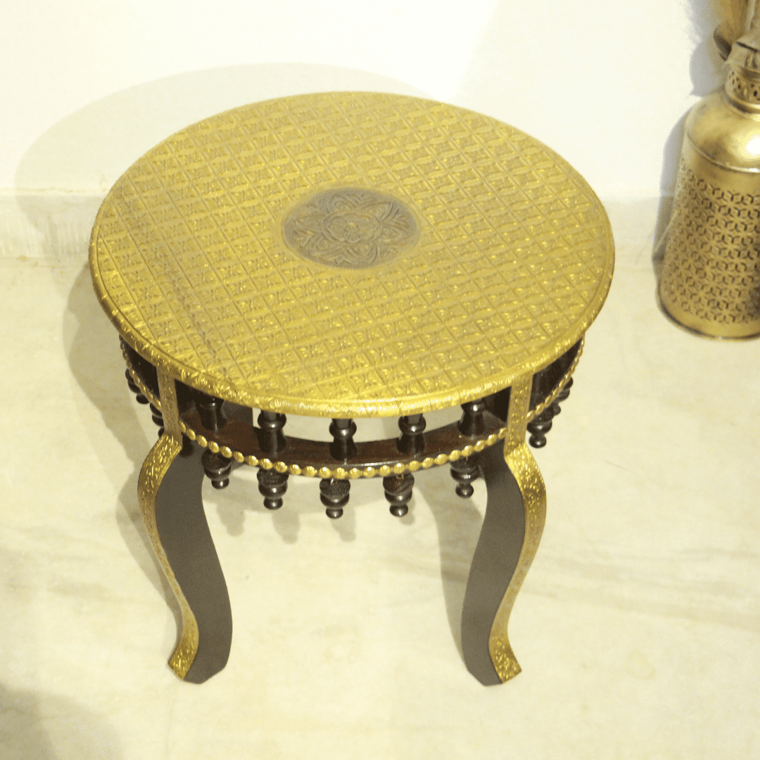 This elegant set of three brass ganti stools offers a versatile and stylish seating option for your home. Crafted with a sturdy wooden frame and adorned with intricate brass accents, these stools are both functional and aesthetically pleasing. The set includes three stools in different sizes to accommodate various needs.