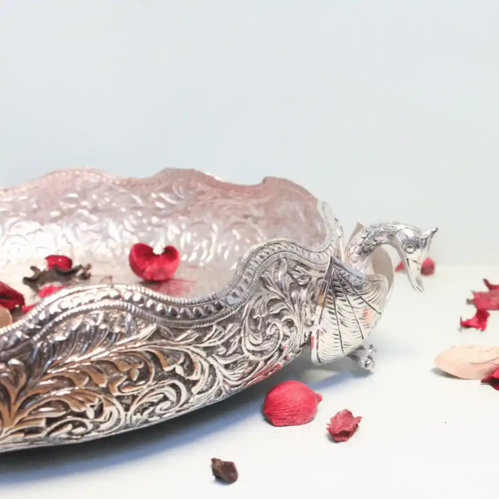 Embrace the charm of traditional Indian decor with the Chitai Duck Urli, a captivating blend of artistry and cultural symbolism. Handcrafted with meticulous detail, this urli showcases the graceful form of ducks, traditionally associated with prosperity and harmony in Indian culture.