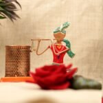 Add a touch of Indian culture to your desk with this unique flutist pen stand. The handcrafted iron figurine depicts a musician playing the flute, while the accompanying pen holder provides a functional and stylish way to keep your writing instruments organized.