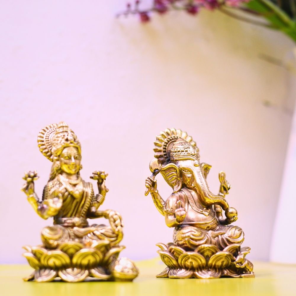 The combined presence of Lakshmi and Ganesh is highly auspicious, ensuring that wealth (Lakshmi) is stable, guided by wisdom and intelligence (Ganesh). Their blessings are considered complete for any undertaking. The exquisite brass craftsmanship provides a traditional, lasting, and dignified presence. This set is considered the ultimate religious gift for conveying wishes for both prosperity and success.